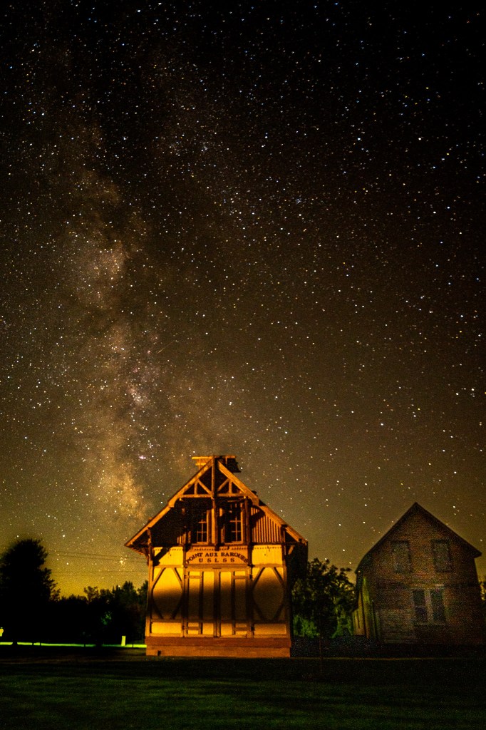 The Milky Way, up in the Southwest early in the evening this time of year, wasn’t in a position to be over the lighthouse, but it was above the other historical structures on the grounds.