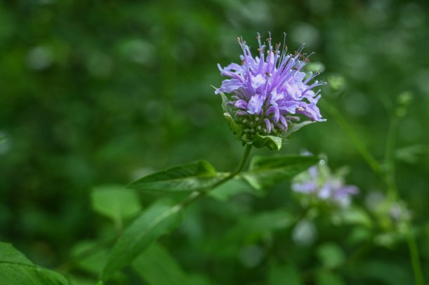 A bit of bee balm reaches for the light.