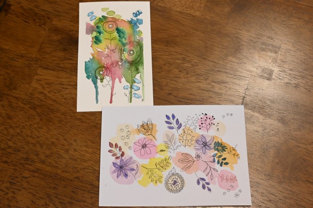 Before I mail them I like to just look at them, and I always take a picture before they go. I’m often surprised that I painted them, but other times it’s painfully clear that I did them, though most of the time I send them on anyway. I know how much it means to get a note in the mail, and most people won’t be offended if the artwork isn’t up to par.