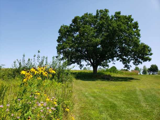 There’s a bench under that tree, taunting me during Mile 8.