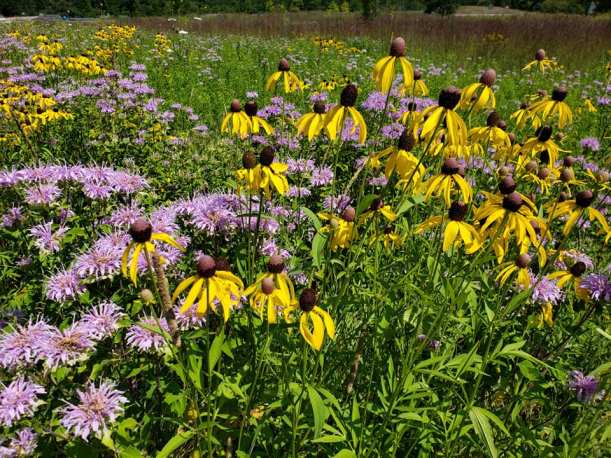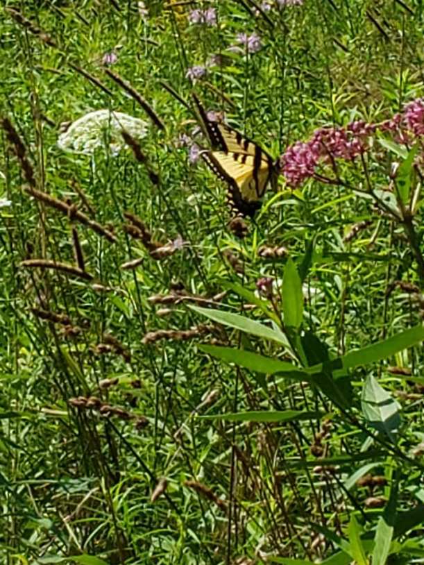 A butterfly enjoyed some wildflowers in an open meadow during Mile 5.