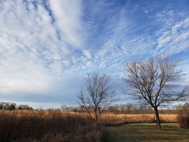 It’s hard to remember when you’re walking the dog around puddles in the street, hood up to keep the rain off your glasses that just a day before we had walked in her park with beautiful skies overhead.