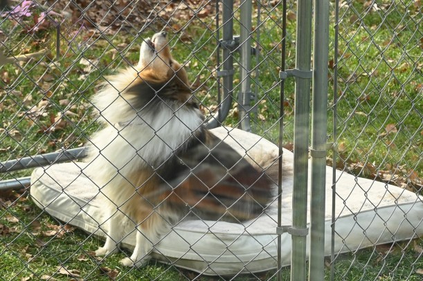 Her eyes followed me, and then she turned her head away. At the time I thought she was pulling a Katie – – not wanting to look at the camera unless there was something in it for her. I even said “You little stinker” as I took the shot above. Turns out that she had just noticed something else and had written me off as nonthreatening.