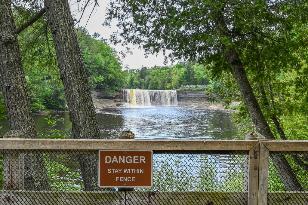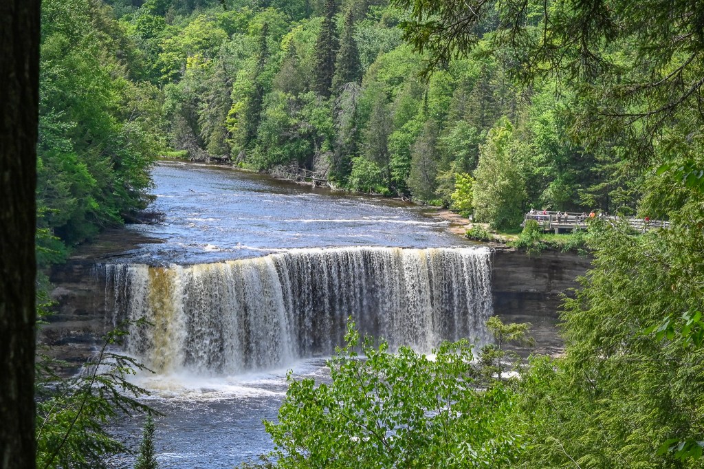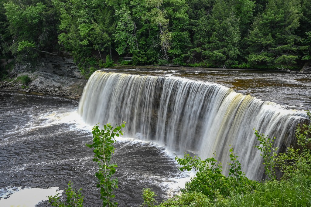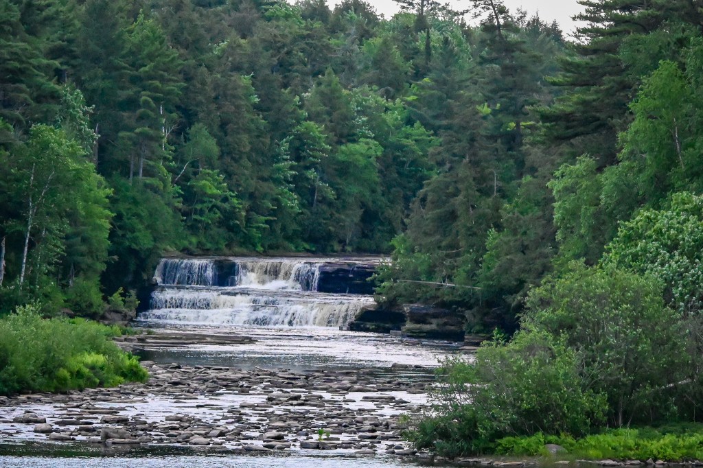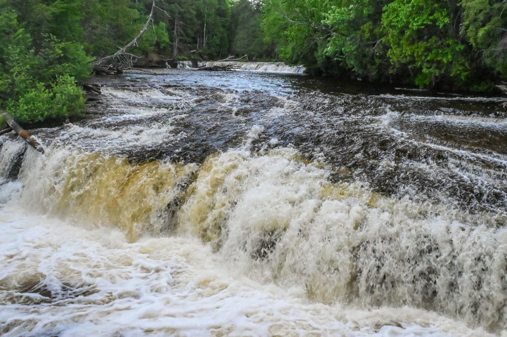 The biggest waterfalls in Michigan are near Newberry in the Upper Peninsula. Tahquamen Falls are a big tourist attraction, there’s a state park campground there, and a few hotels in neighboring towns. I just drove over from my campsite down at St. Ignance.