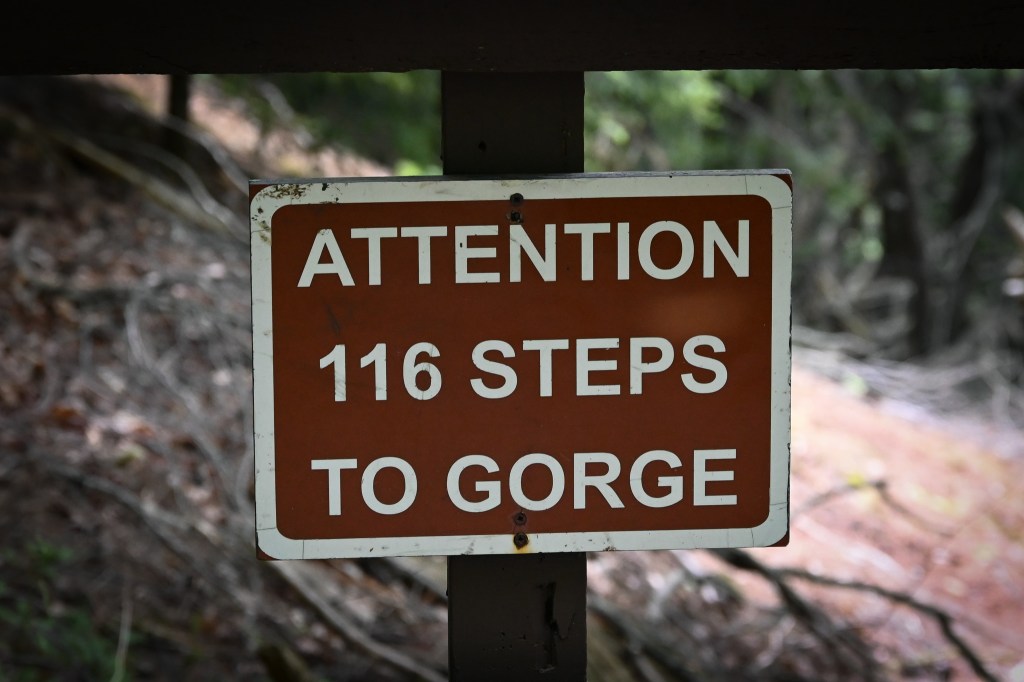 Then you can walk the four miles through the woods to the lower falls. Not many people do that, as the trail is quite rustic. I drove. Those stairs were plenty of exercise for me.