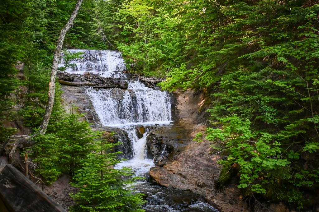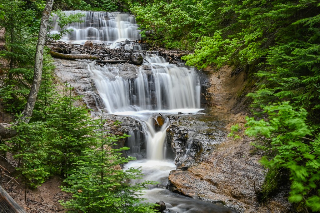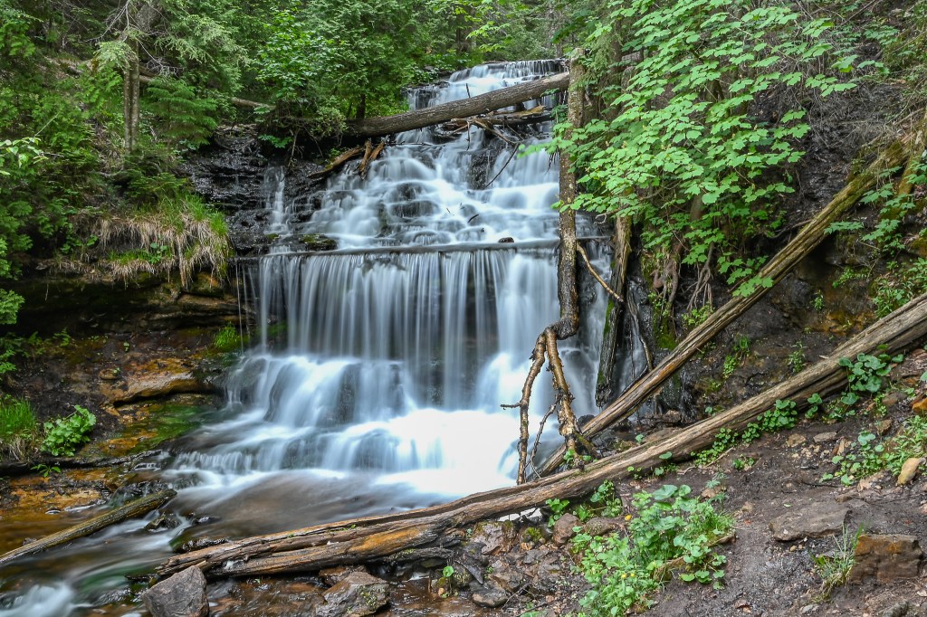 While I was camping in the Upper Peninsula last week I got to roam around several waterfalls. I’d been to all of them in years past, and if you’re a long time reader you’ve probably seen them all. But come along with me anyway, you deserve a short break and waterfalls are fun.