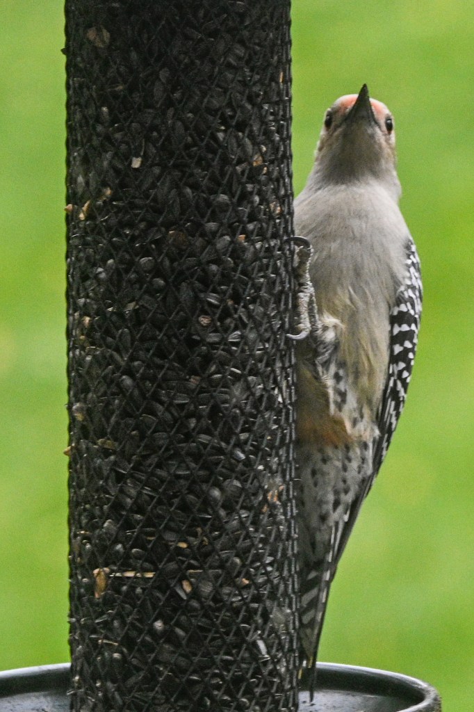 And then Ms Red-bellied arrived, chasing Mr. Downy off the feeder.