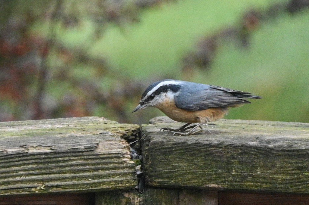 I’m new around here (red breasted nuthatch, I’ve never seen here before!), so I’ll just look for seeds over on the railing.