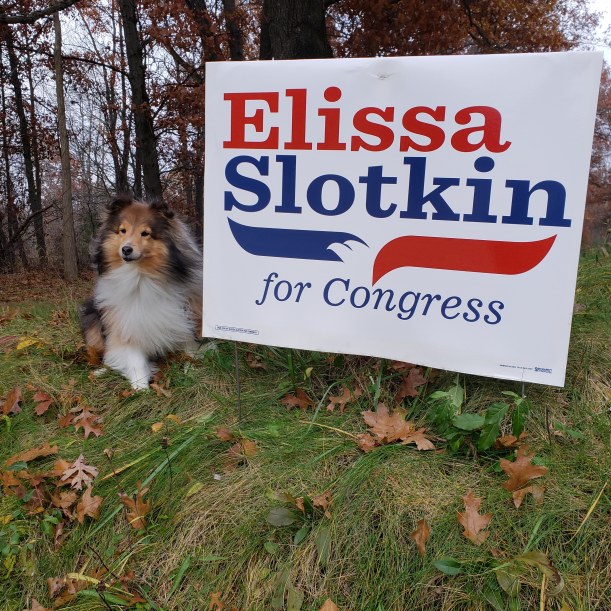 This year my husband and I have focused on getting people the yard signs they’ve requested. We live in a township that is very red, the roads are lined with signs of the opposing party. I take it as a personal victory when I can get one of Elissa’s signs into a yard that is surrounded by her opponent’s signs.