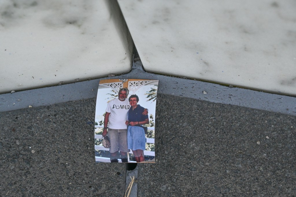 We drove down to the lower area, and walked the pathway back to the wall of names. Along the way were some mementos in a space designed to collect them.