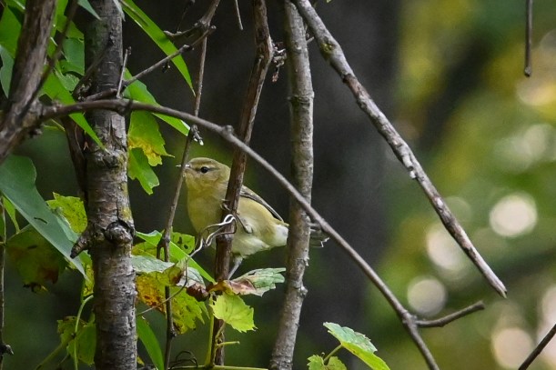 A little round yellow bird. Maybe a warbler?