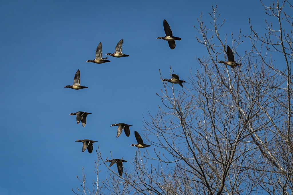 A female wood duck takes off. I seem to be disturbing everyone!