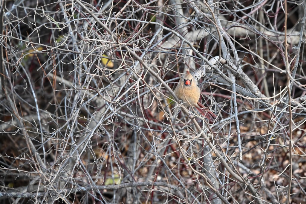 After spending a long time watching them I turned and began my long walk back to the car. By now the sun was really up and so were all the little birds. Lots of hopping around in the underbrush, chirping, flitting across the path. I only got one of the little ones in a decent shot.