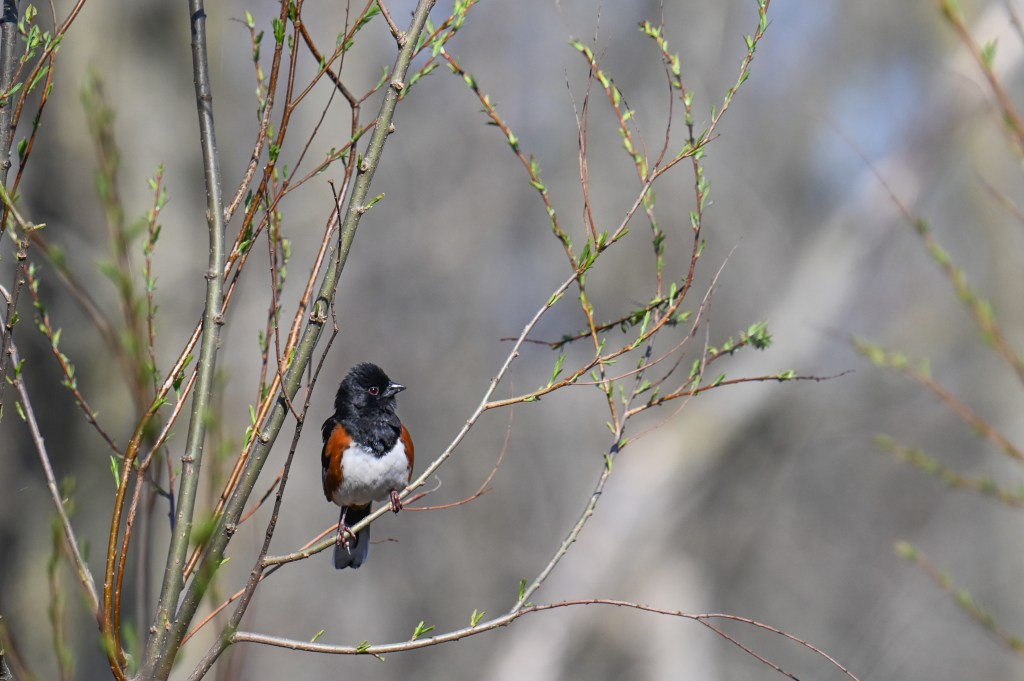 I rarely see this bird at home, I think in the 30+ years I’ve lived where we are now I’ve seen a Towhee twice. They’re supposed to be here in Michigan all summer but they’re rare in my world. I was thrilled to see him, even if I didn’t get a better look.