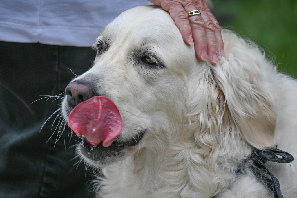 This year she’s older and wiser and a little bit calmer. Though she still looked when noisy things including people with their dogs walked by, she didn’t automatically come undone.