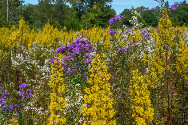 Just about a mile up our country road is a corner filled with pyramid shaped goldenrod and dark purple asters. If I happen to go by when the sun is low I can’t help but be mesmerized.