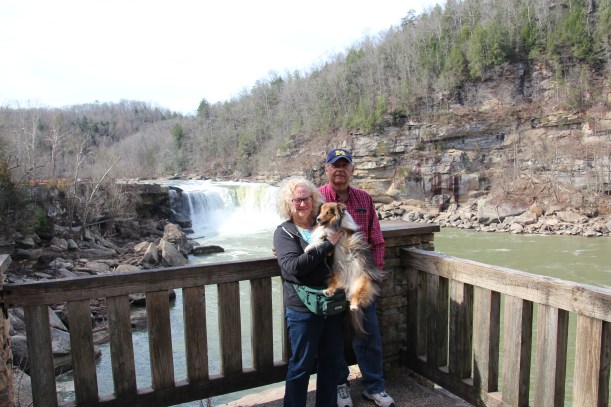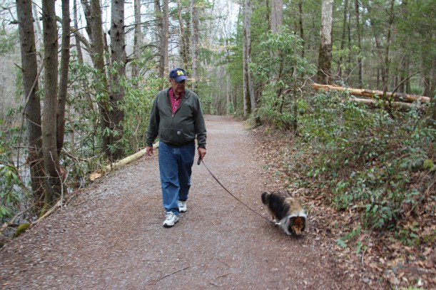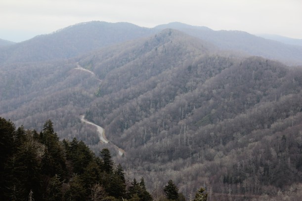And the deciduous trees are just budding out, with red and peach and orange and lime green making the mountains just glow in the sun. Mama couldn’t get a good picture of it cause she was driving. But the image below she took when we were at the Kentucky welcome center. The trees were on the other side of the freeway, and the light wasn’t as perfect as she’d seen when she was driving, but you can kinda see how beautiful it is here this time of year.