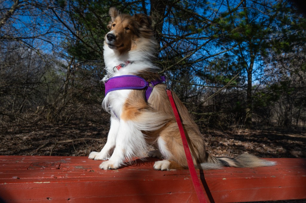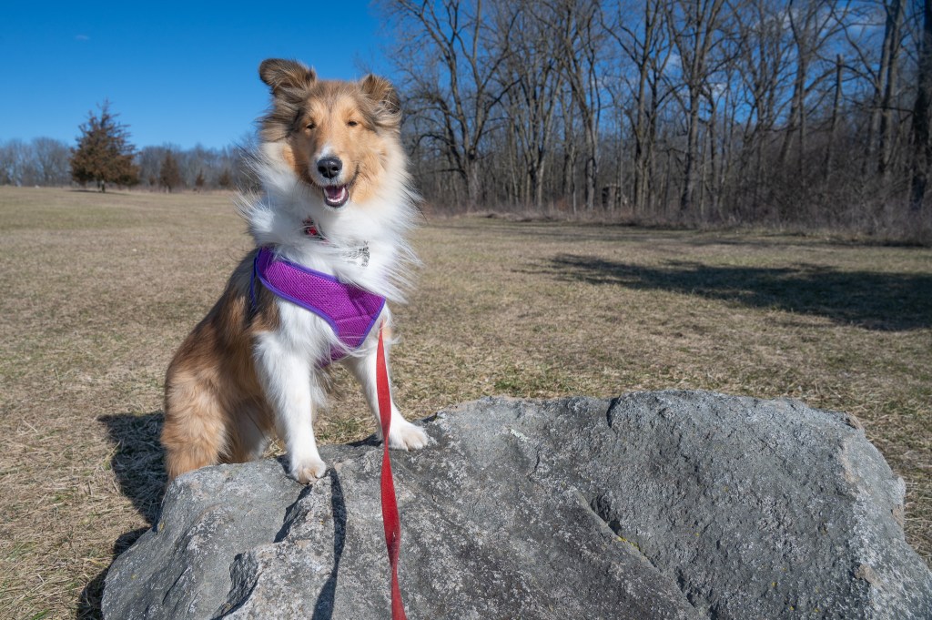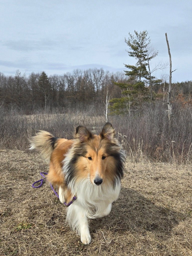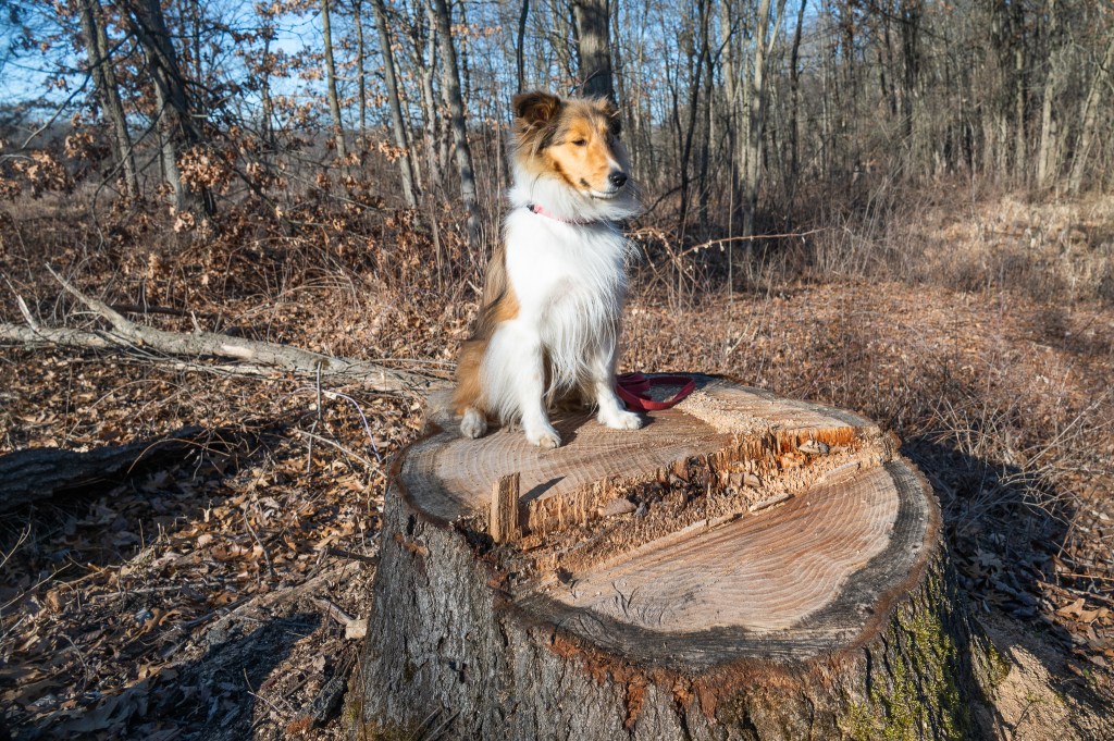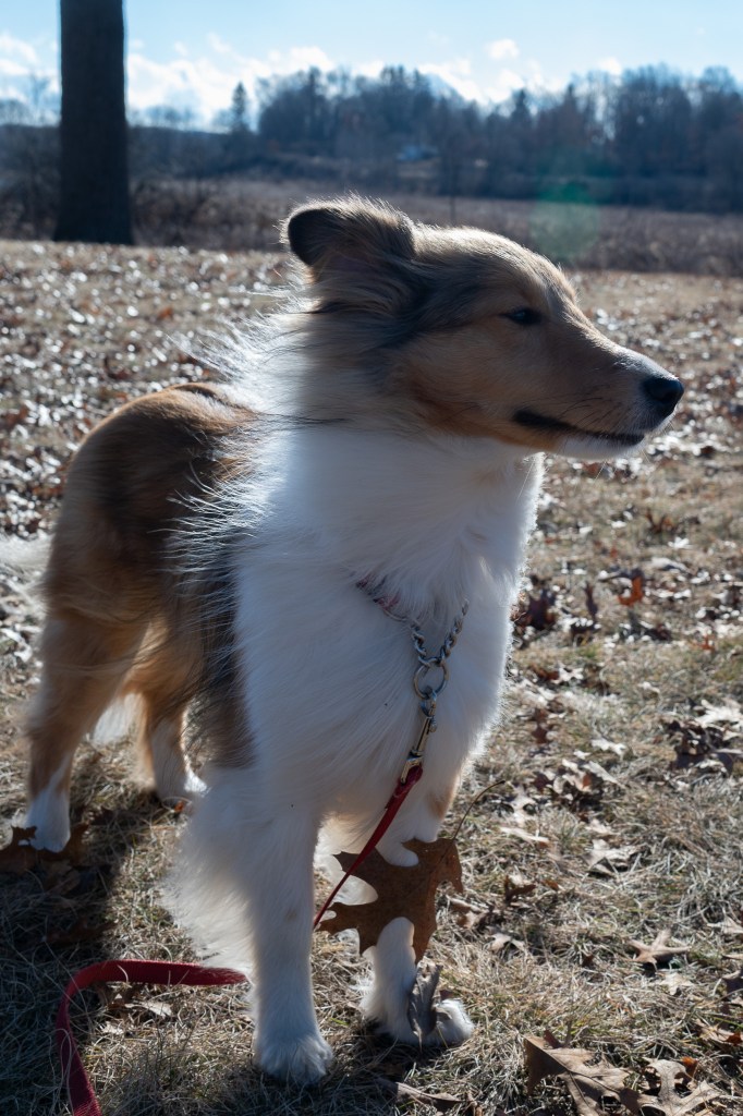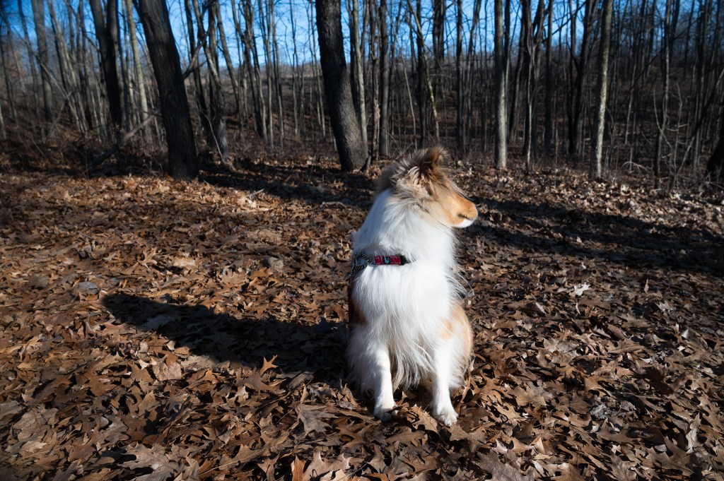 It was windy the morning we were there, and cold, but I was having a great time exploring until mom tried to walk with me into the woods. I’ve told her and told her I don’t really like being in the woods. And that day there were leaves blowing all around and trees creaking and stuff.