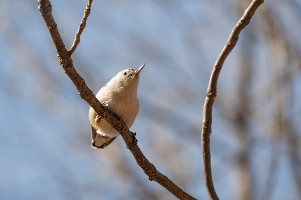 I could hear the vireo and the common yellow throat coming from down near the marsh, so I crept that way. I spent a long time standing still staring up at a cottonwood tree that I’m pretty sure hid the yellow throat. But I never saw anything move.