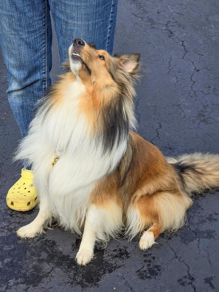 Well! I’m not real happy about being near noisy cars and I was a little bit hyper but the nice lady and my mom would just make a sound that reminded me to look at them and then I got a treat!