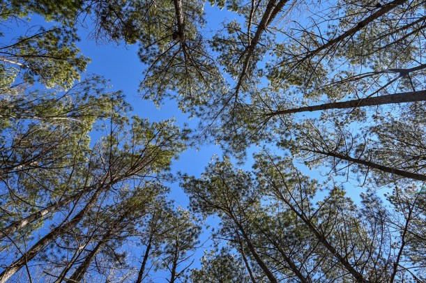 Tuesday was windy, with no clouds. The tall pines were waving in the breeze.