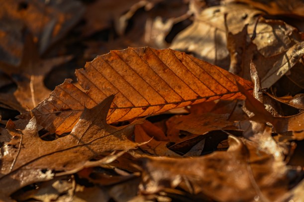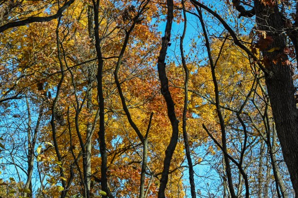 It was quiet back there, and the sun was shining down on me walking silently on a cushy bed of fallen oak leaves. There was something pretty no matter where I looked.