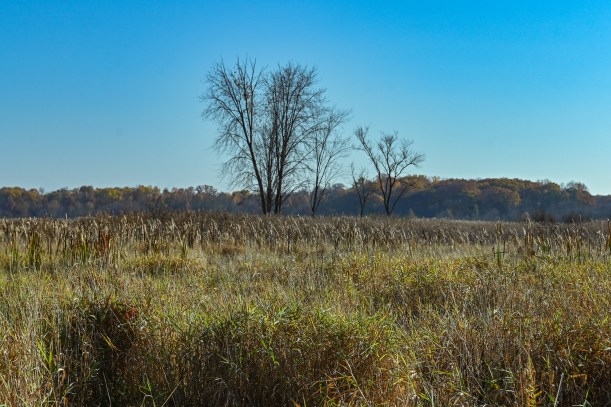 I got to an intersection. I had another choice to make. I could go straight and be back at the car in 15 or 20 minutes. Or I could turn left and make another large loop up and down some hills and through a meadow and a wetland. I almost headed back, I was certain that was what I was going to do. My neck and back were getting tired from carrying the camera with the long lens. I was hungry. I had pictures of large birds and a doe.
