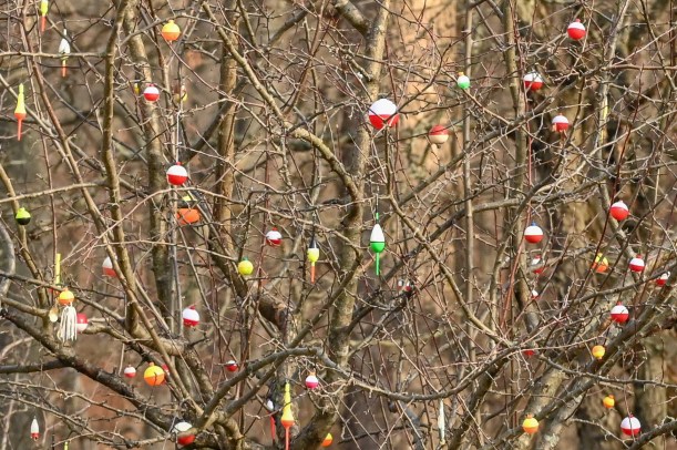 There was another tree across the street decorated all in fishing lures an bobbers. I have no idea why, but it also was pretty.