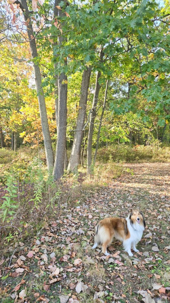 Monkey, a very special sheltie-boy, took his mom out to see what there was to see, and you’d be amazed at the color he found! https://domermom.com/2025/10/27/walking-with-monkey-2025/