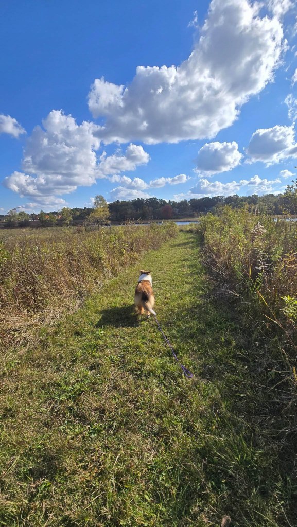 Penny the sheltie-girl wanted to make sure you all had a chance to see one of her parks, so she took you to Davis Lake Overlook Park, not far from our home. It was a beautiful October Sunday and she and I had a wonderful time. https://dawnkinster.com/2025/10/13/penny-takes-a-walk/