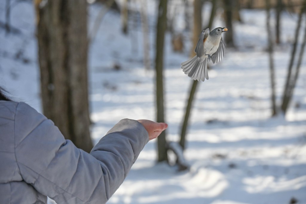 I see some people walking the trails for exercise, but the majority of people are there to experience a bird landing on their hand, or to photograph birds. Or both.