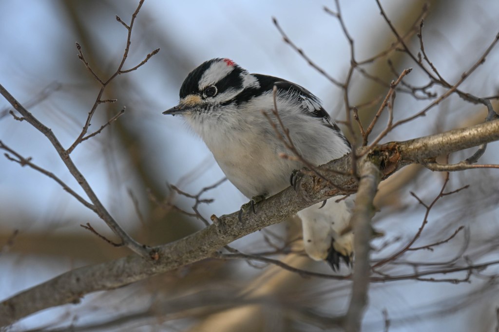 This chunky little woodpecker had a hard time fitting through the feeder cage.