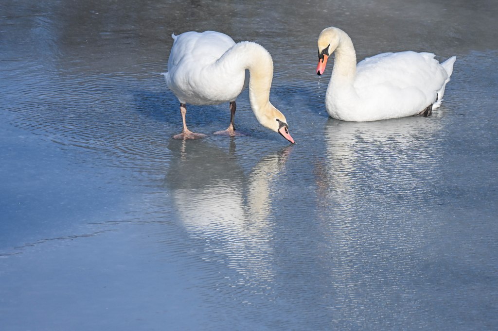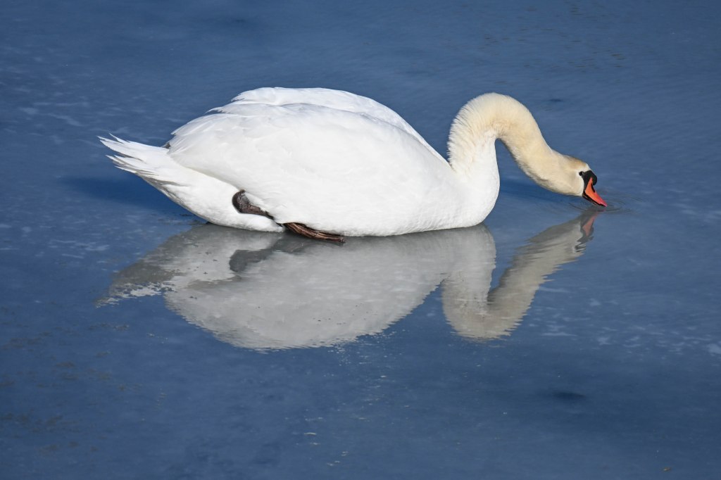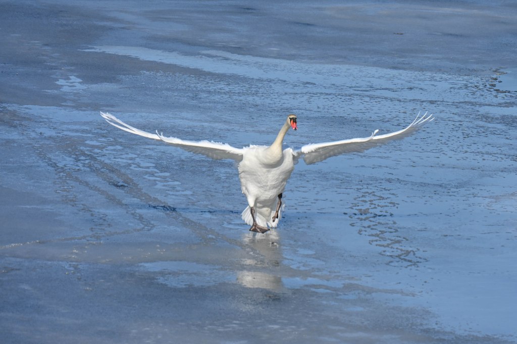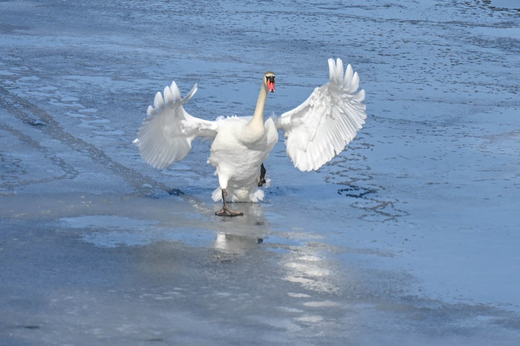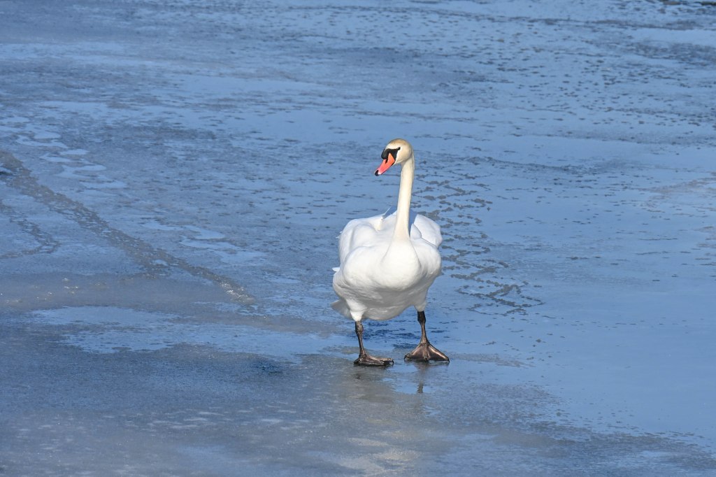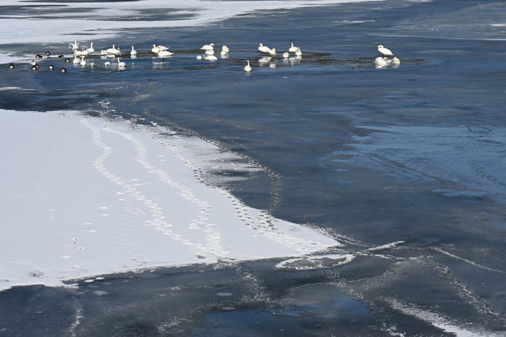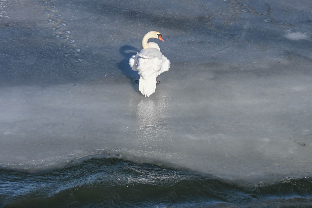 We each climbed into our respective cars for the trip out of the park. But there was one more place we needed to check out before we left. Because, on our drive into the park we’d both, separately, noticed a single swan sitting in a blue pool of open water in the frozen river. It was a stunning scene, but neither of us had pulled over.