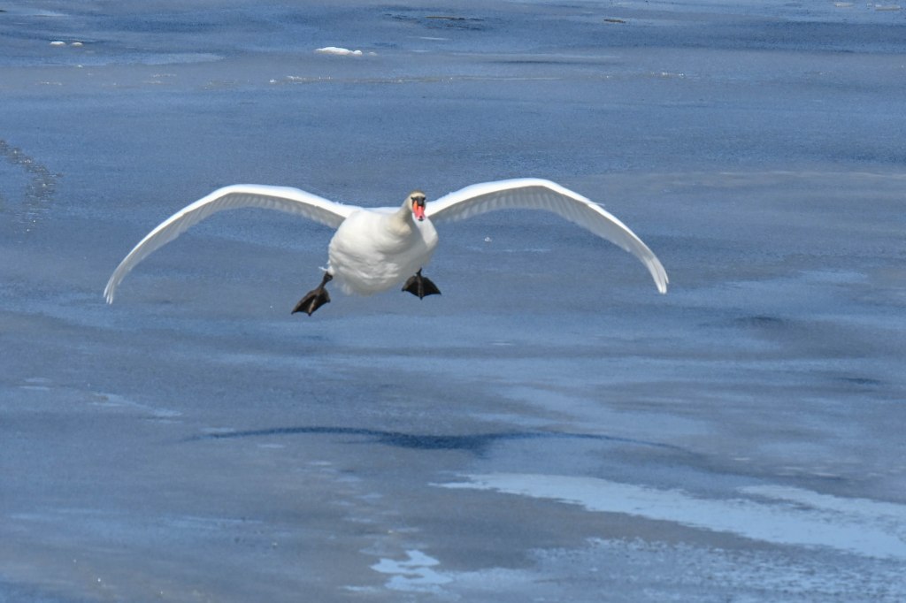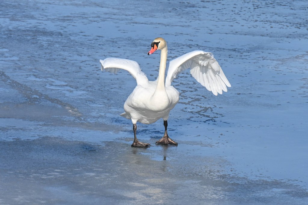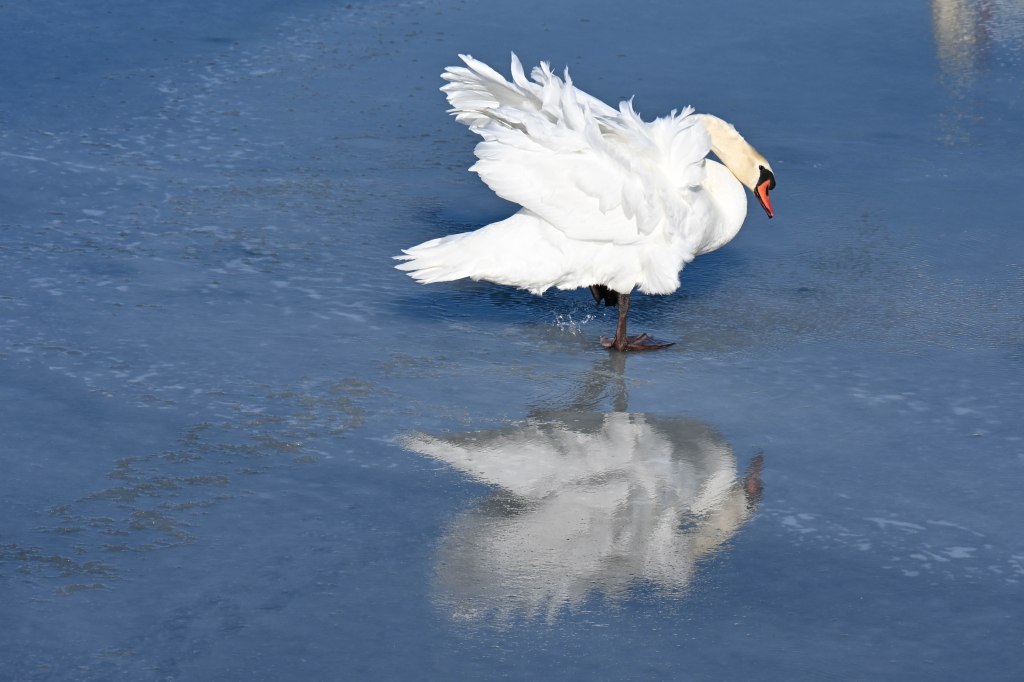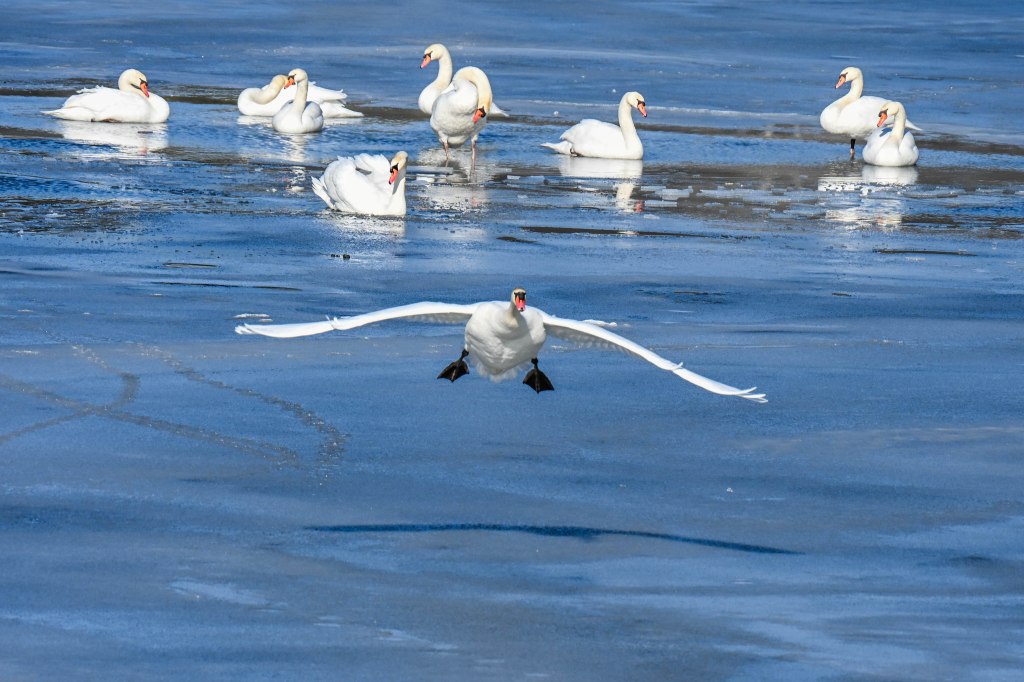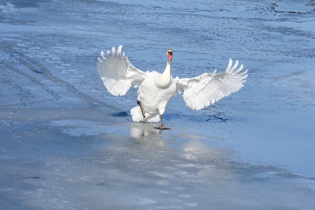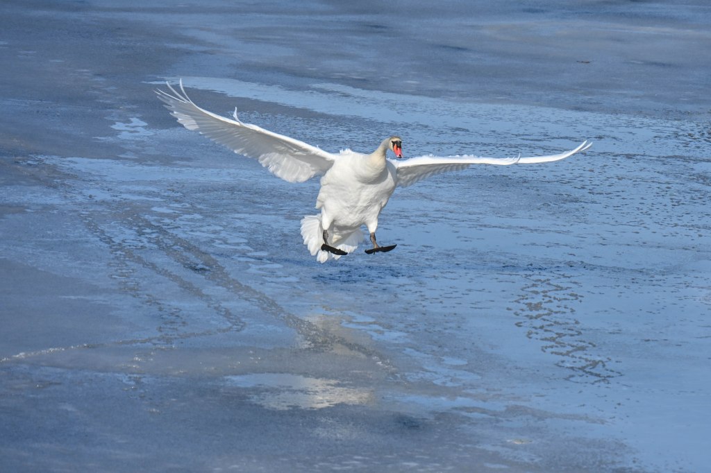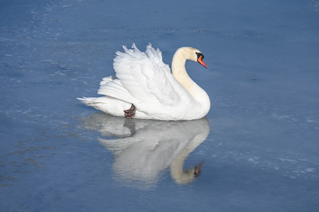 We each climbed into our respective cars for the trip out of the park. But there was one more place we needed to check out before we left. Because, on our drive into the park we’d both, separately, noticed a single swan sitting in a blue pool of open water in the frozen river. It was a stunning scene, but neither of us had pulled over.