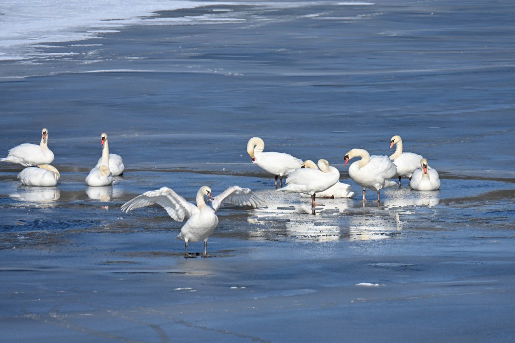 But when we packed up the car for the return trip we decided if the swan was still there we’d stop. And wonder of wonder, when we drove across the bridge above the river there were dozens of swans!