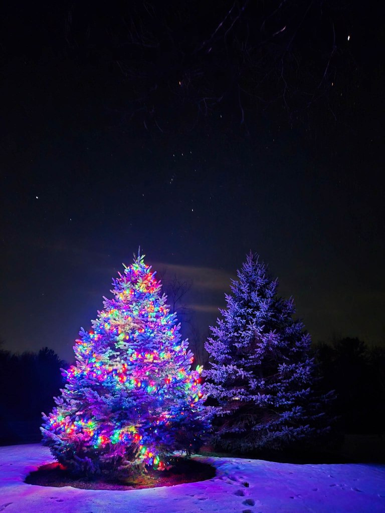 During the dark cold winter nights the lights on that lone tree warm me, and it turns out, our neighbors too, who always comment their appreciation of our beautiful tree.