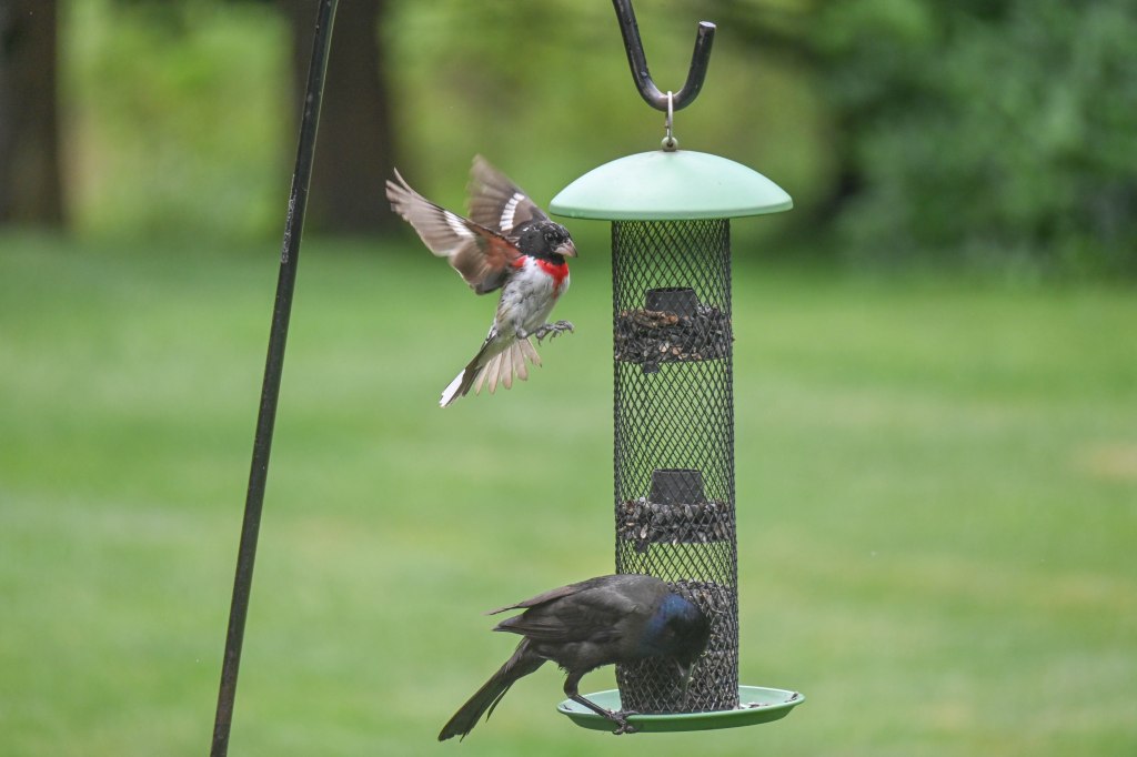 Dark eyed juncos are only here for the winter months. And they are the first harbingers of winter, so my heart drops. But they are also adorable little round birds, and they will hop around under the feeders all winter, delighting us with their antics. So my heart fills that they’ve chosen my yard again.