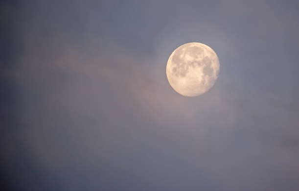 Katie and I experienced a magical moon one morning not so long ago. It wasn’t quite full, not anymore, but like a flower that’s just past it’s prime it was still beautiful.